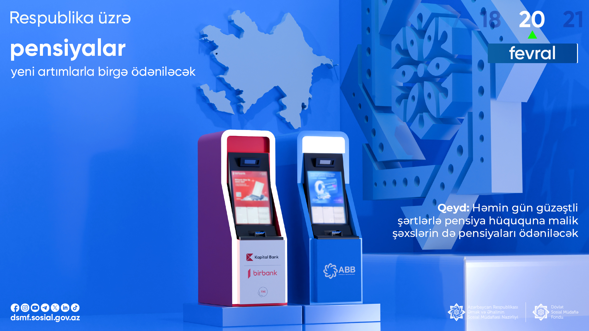 Fevralın 20-də respublika üzrə pensiyalar yeni artımlarla birgə ödəniləcək
