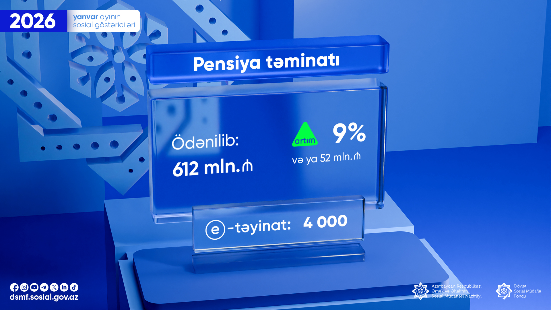 Ötən ay pensiya ödənişlərinə 52 mln. manat çox olmaqla 612 mln. manat vəsait yönəldilib