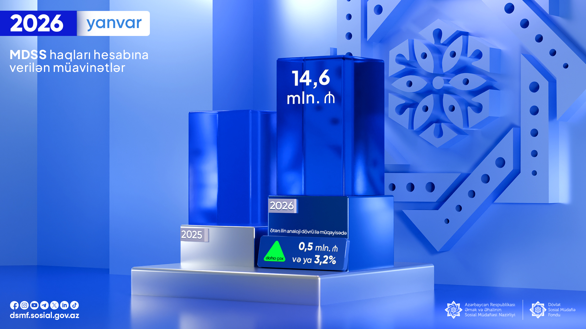 Cari ilin yanvar ayında MDSS haqları hesabına verilən müavinətlər üzrə 14,6 mln. manat vəsait ödənilib