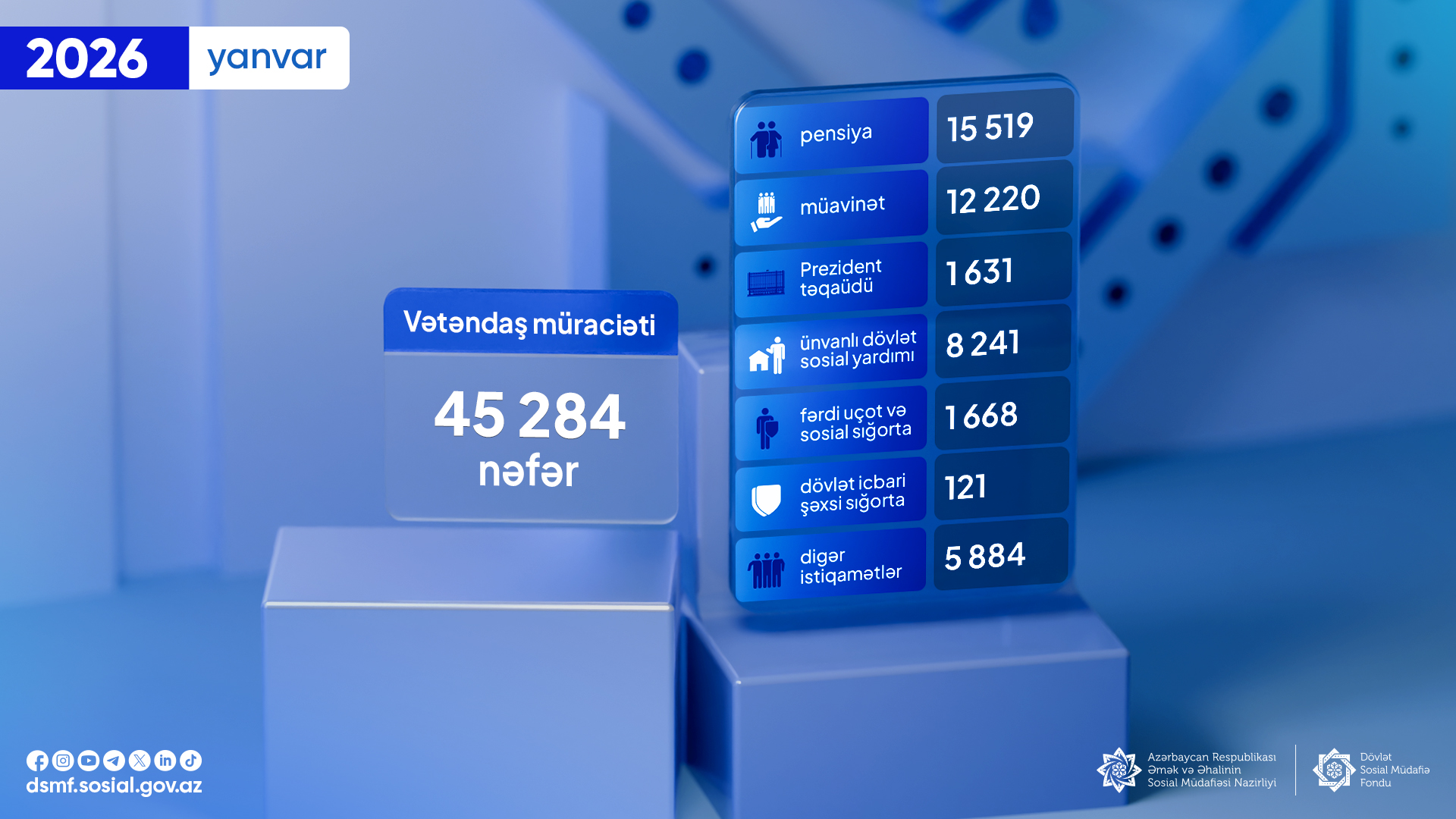 Yanvarda DSMF-nin fəaliyyət istiqamətləri üzrə 45 284 vətəndaş müraciəti qeydə alınıb