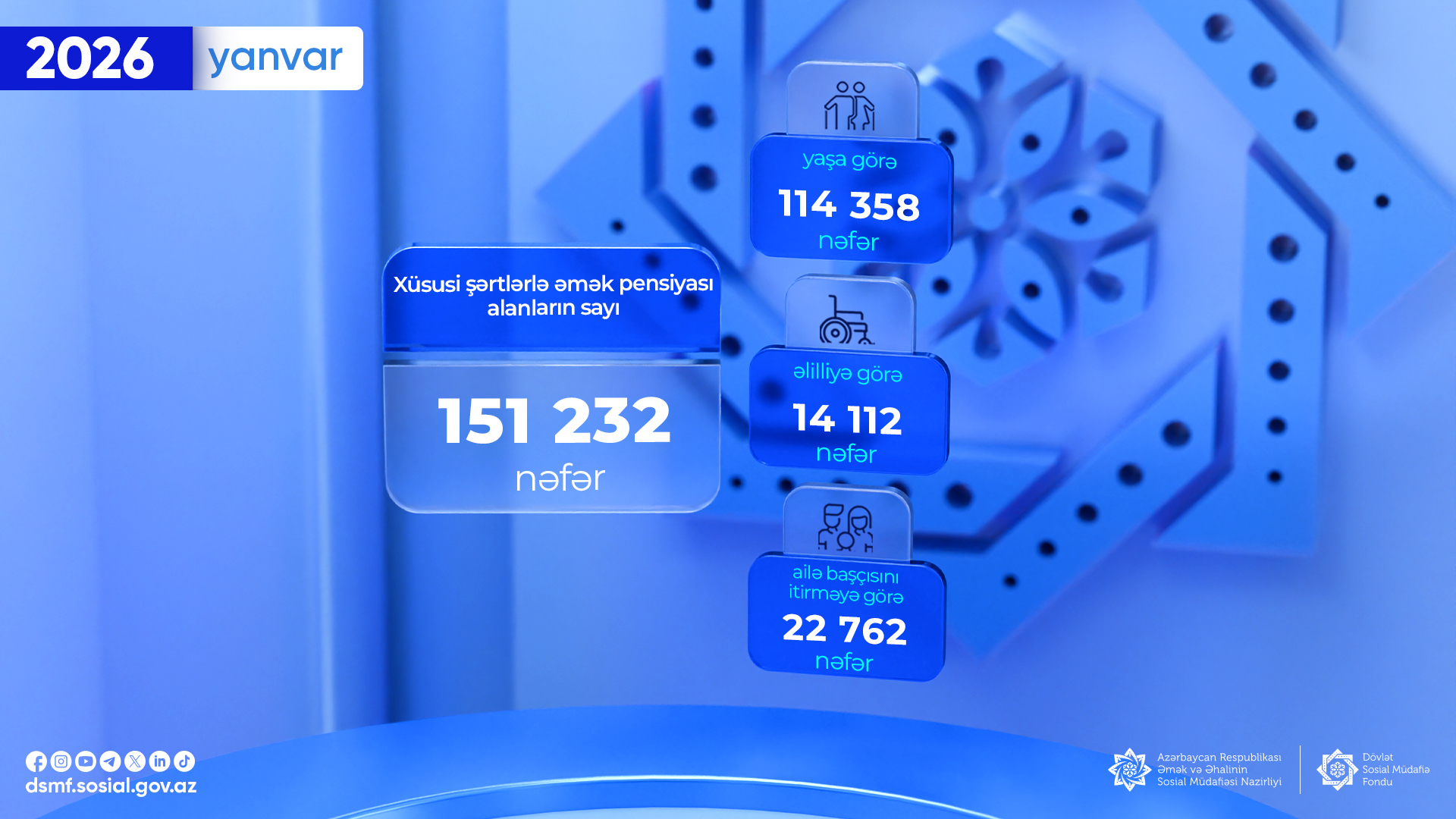 Cari ilin yanvar ayında 151 232 nəfər xüsusi şərtlərlə əmək pensiyası alıb