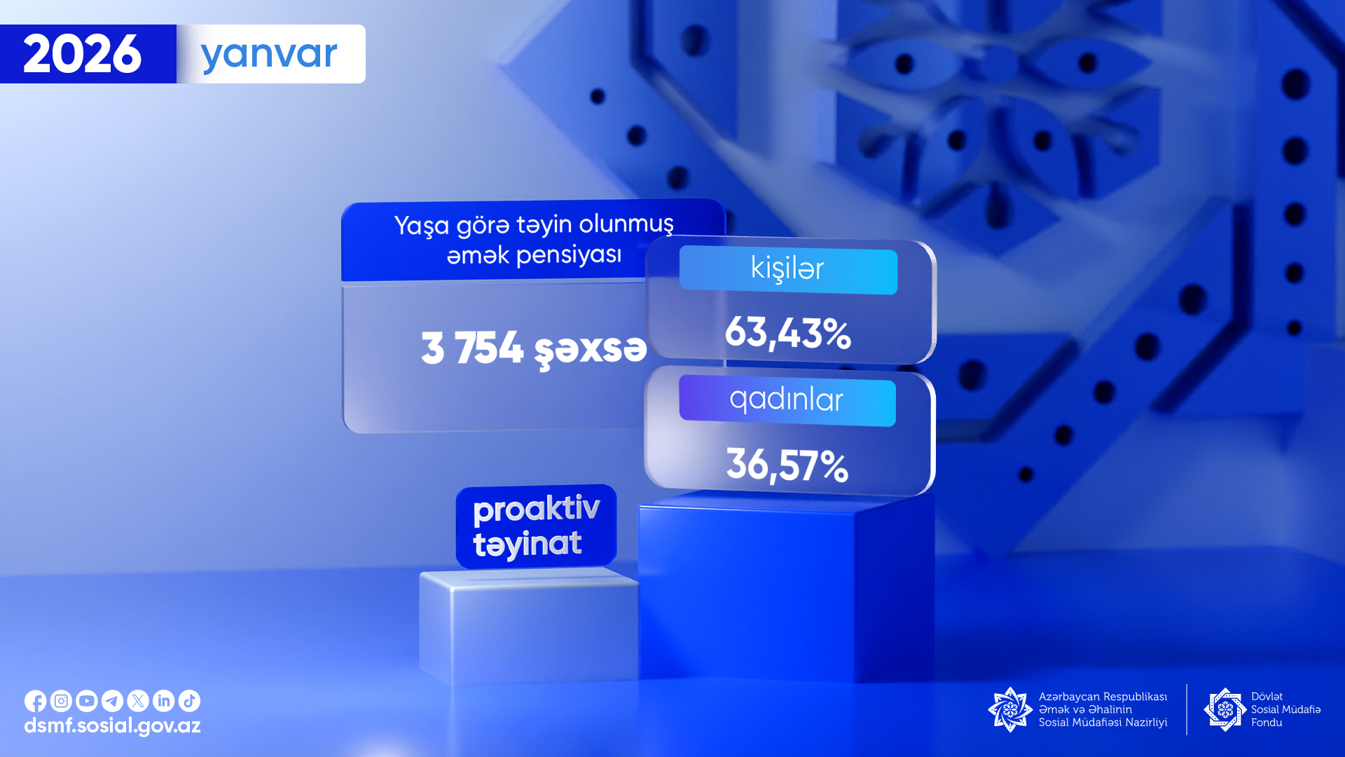 Yanvarda 3 754 şəxsə proaktiv qaydada yaşa görə əmək pensiyası təyin olunub