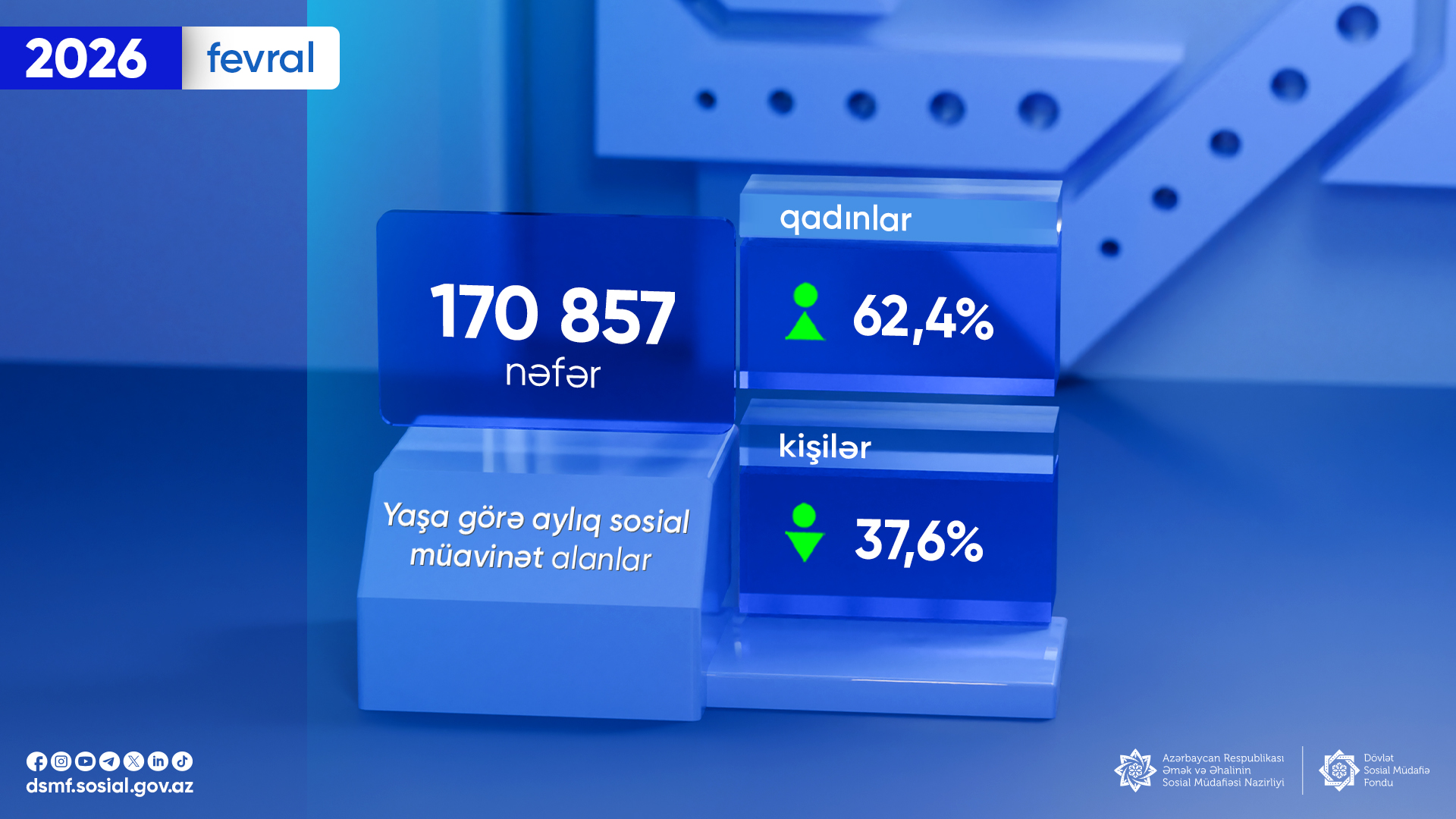 Cari ilin fevral ayında 170 857 nəfər yaşa görə aylıq sosial müavinət alıb