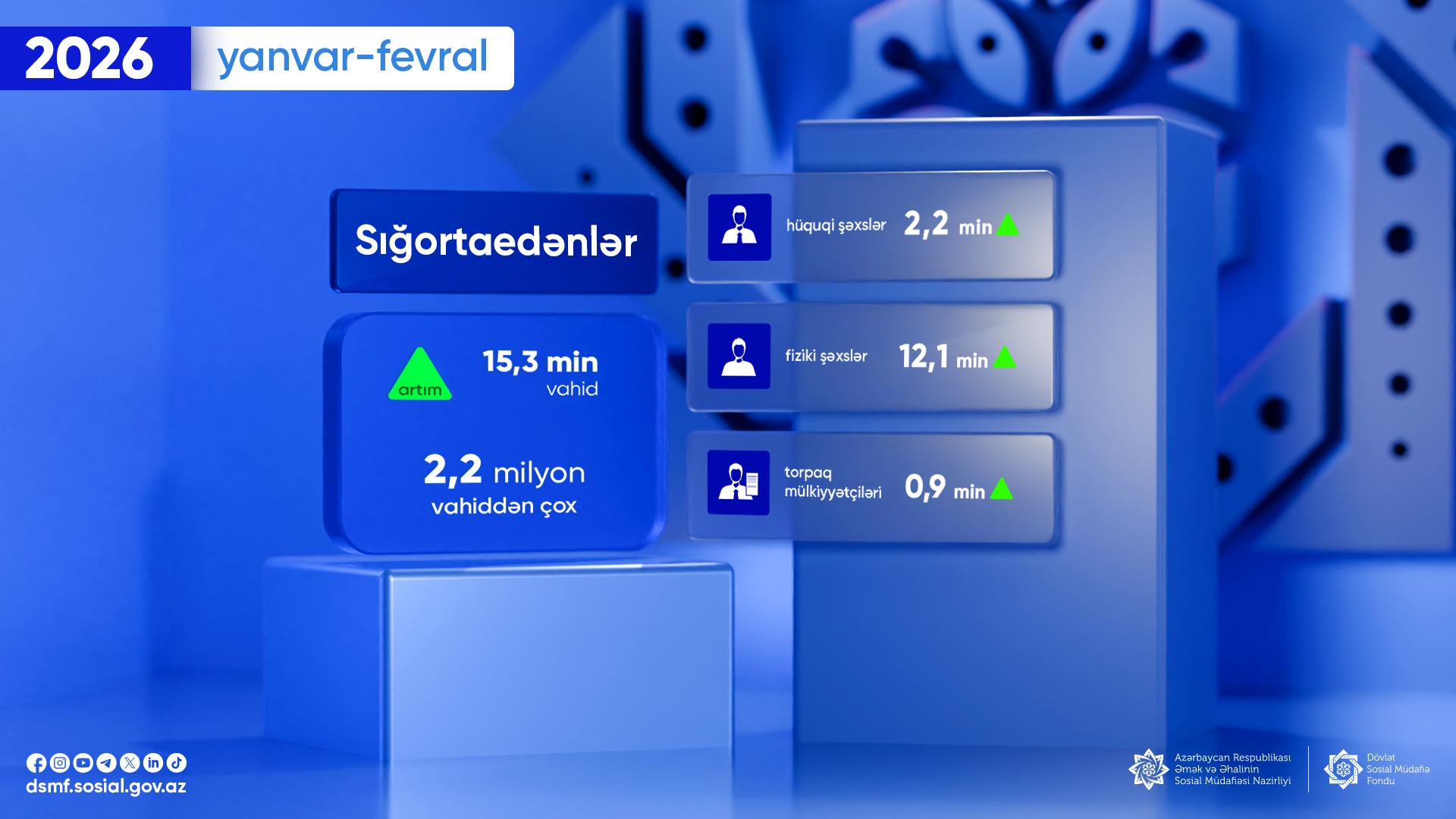 2026-cı ilin ilk iki ayı ərzində sığortaedənlərin sayı 2,2 milyon vahiddən çox olub