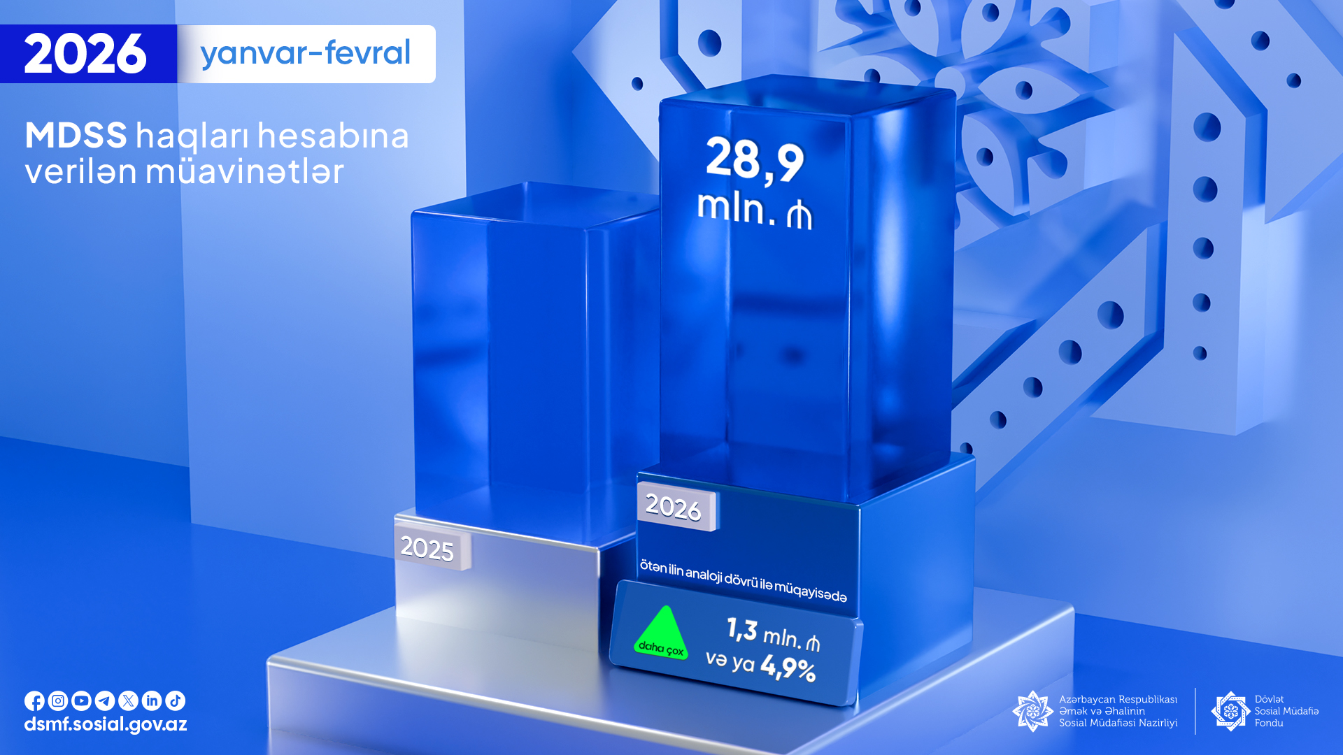 Yanvar-fevral ayları ərzində MDSS haqları hesabına verilən müavinətlər üzrə 28,9 mln. manat vəsait ödənilib