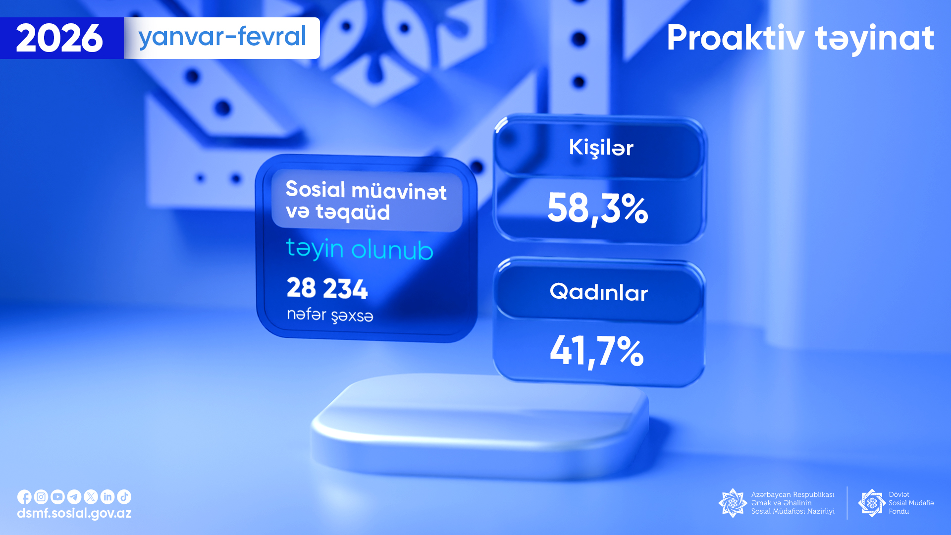 Cari ilin yanvar-fevral aylarında 28 234 nəfər şəxsə proaktiv qaydada sosial müavinət və təqaüd təyin olunub