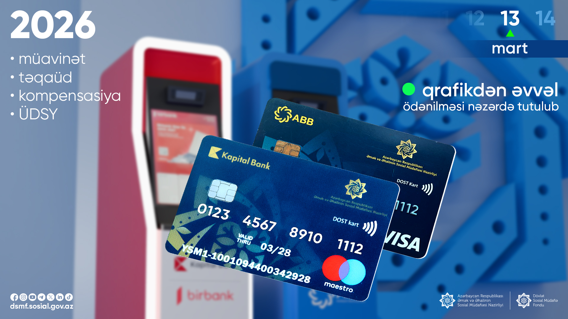 Bütün sosial ödənişlər martın 13-də qrafikdən əvvəl yekunlaşdırılacaq