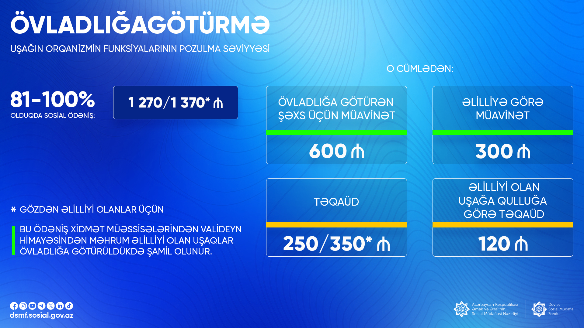 Əmək və Əhalinin Sosial Müdafiəsi Nazirliyi tərəfindən birdəfəlik maddi yardımlar İkinci Dünya müharibəsi iştirakçılarının və digər müvafiq şəxslərin bank hesablarına köçürüləcək.